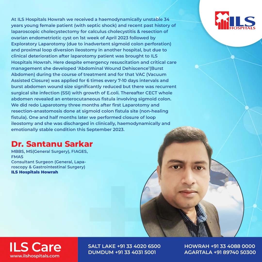 Dr Santanu Sarkar ( MBBS; MS, FIAGES;FMAS) is an eminent Surgeon in North kolkata & North howrah. After completing his graduation (MBBS) from prestigious Kolkata Medical College & Hospital he completed his master's degree in Surgery from same institution on 2011( total 14 yrs of experience in the field of surgery),